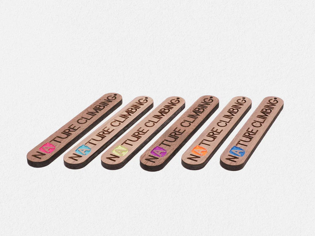 All our Nature Climbing Sanders are made of European FSC certified walnut wood with the perfect match of sandpaper attached to the backside of the wood. They are all engraved with our logo and are colored in a variety of colors, to create a unique product that suits you.
